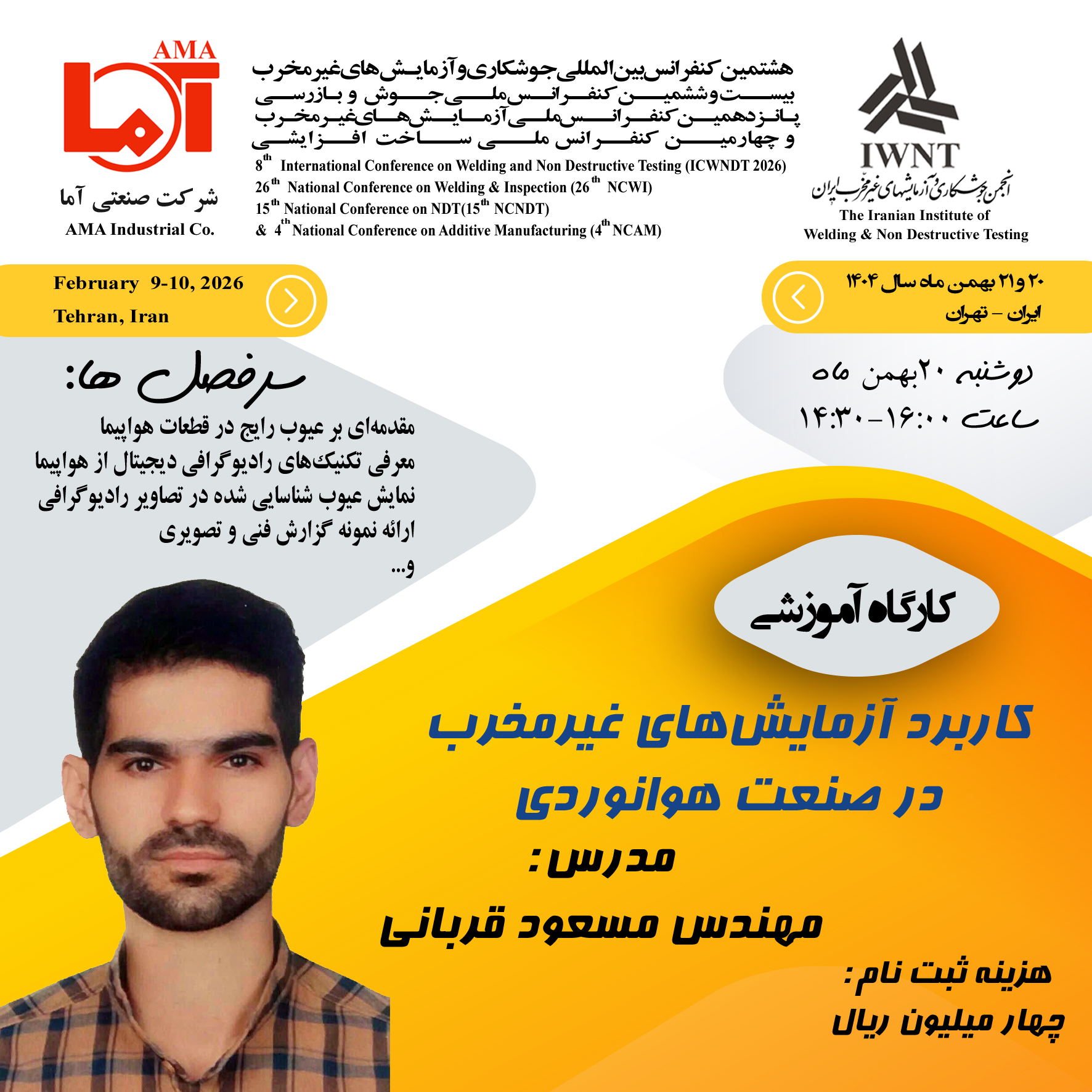 پانزدهمين كنفرانس ملي آزمايشهاي غيـرمخرب و چهارمین کنفرانس ملی ساخت افزایشی
