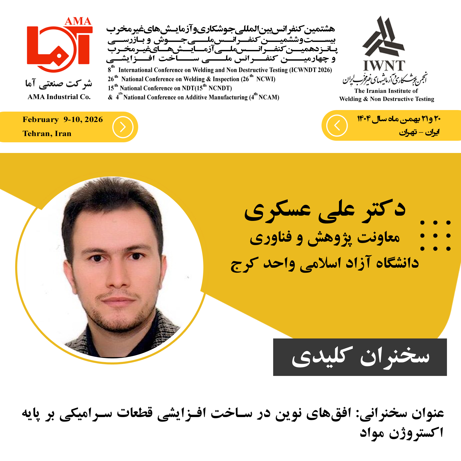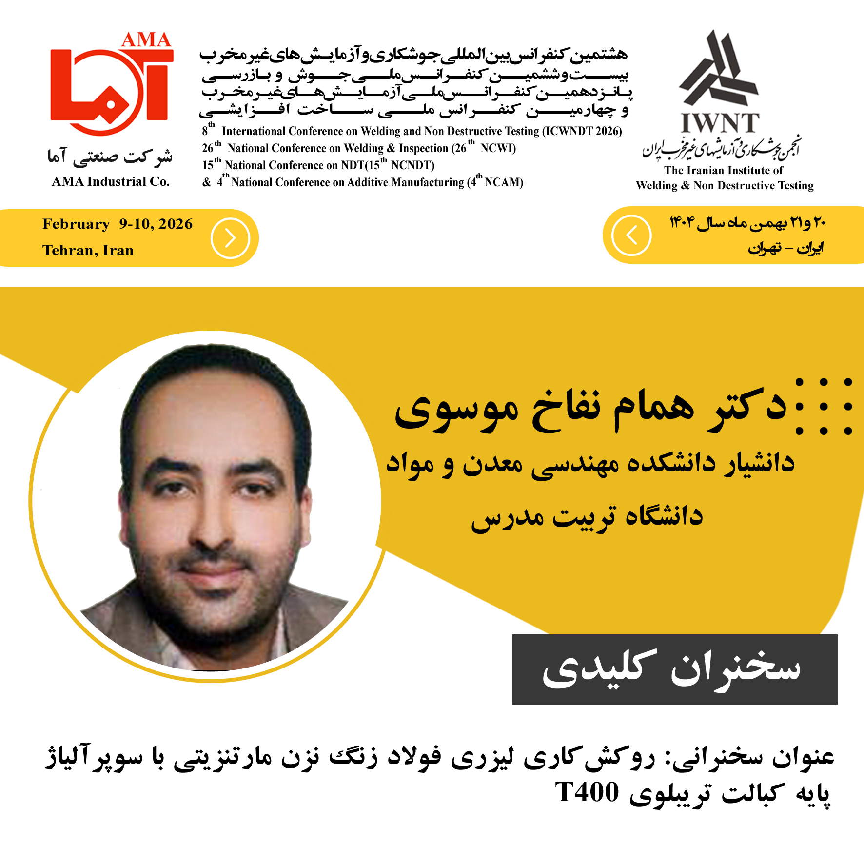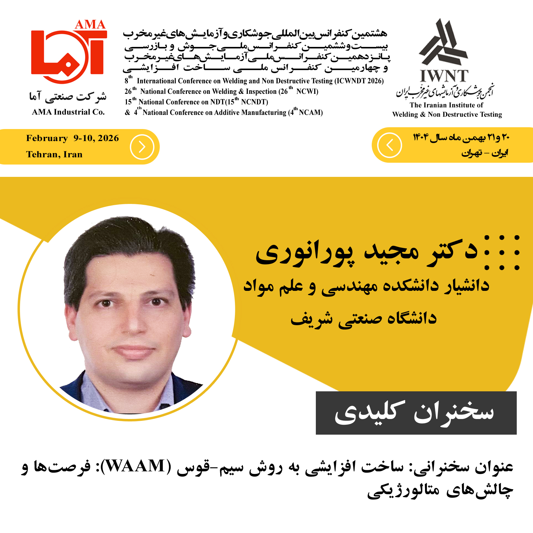»سخنرانی کلیدی | دکتر مجید پورانوری |ساخت افزایشی به روش سیم-قوس(WAAM): فرصت ها و چالش های متالورژیکی